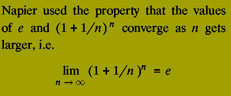 The last drawback is acceptable, provided that the answers given are accurate enough for the application of interest. Napier described the technique of calculating with logarithms and provided some basic tables which addressed the first problem. The second difficulty was not easily dealt with by Napier's tables. The reason for this is that Napier did not understand the concept of base of a logarithm and his tables were constructed using the constant 1/e. e is a mathematical constant which has no simple physical definition: in differential calculus e may be defined as the unique constant such that the function e^x is its own derivative.