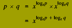 In the former category we consider the work of 3 people: The technique of calculating via logarithms was described by Napier in the paper Mirifici logarithmorum canonis descriptio of 1614. Logarithms provide a mechanism for reducing multiplication and division to the (relatively) simple operations of addition and subtraction. A table of logarithms (to the base x) for some range of numbers (1 to 100, say) is a list which gives for each value, n, a quantity y called the logarithm of n to the base x (log^-x n). This quantity has the property that x^y = n. Thus if x=10, log^-10 1000 = 3. To perform multiplication of two numbers p and q, one finds logp and logq, adds these values, and then look up the anti-logarithm of the result. That this procedure is correct follows from the relationship
